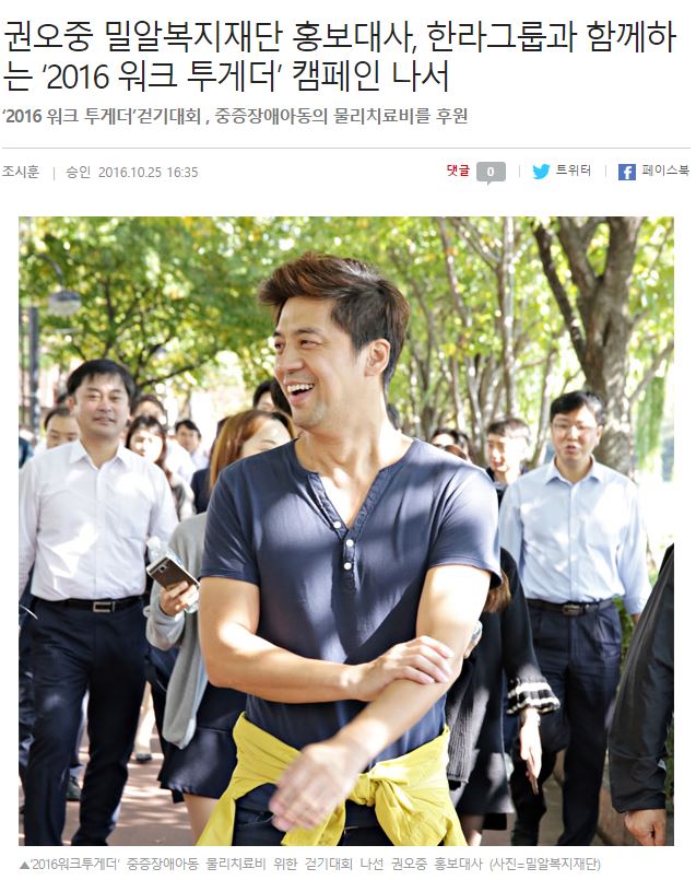 [복지연합신문] 권오중 밀알복지재단 홍보대사, 한라그룹과 함께하는 ‘2016 워크 투게더’ 캠페인 나서