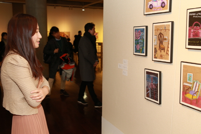 지난 3월, 밀알미술관에서 진행된 ‘2016 봄’ 전시회에서 관객이 작품을 감상하고 있다