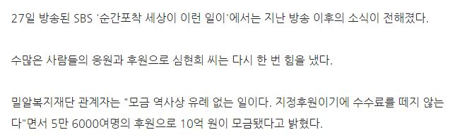 [일요신문] '세상에 이런일이' 신경섬유종 심현희, 방송 후 밝아진 모습 "감동해 눈물나"