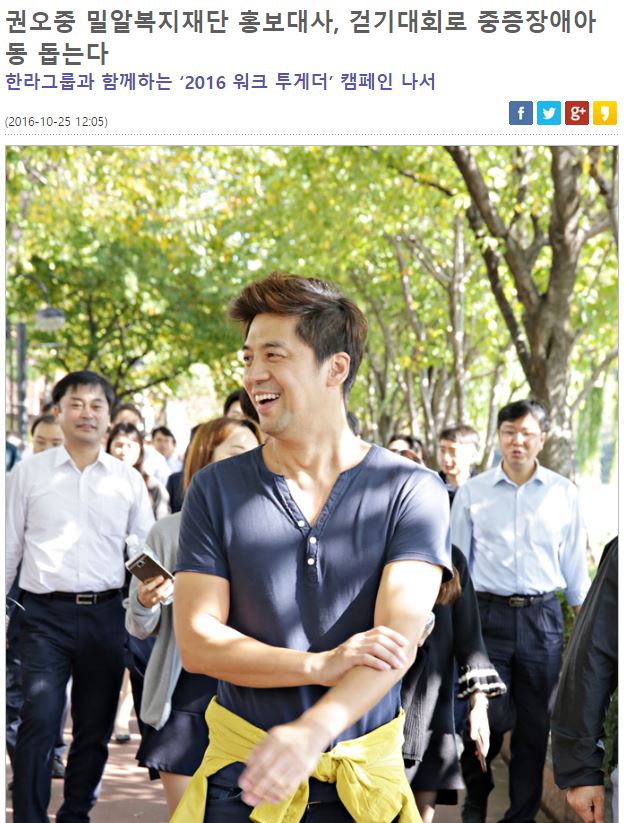 [아시아일보] 권오중 밀알복지재단 홍보대사, 걷기대회로 중증장애아동 돕는다