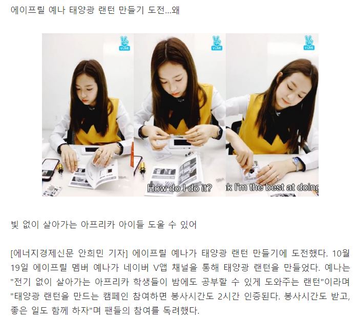 [에너지경제] 에이프릴 예나 태양광 랜턴 만들기 도전…왜
