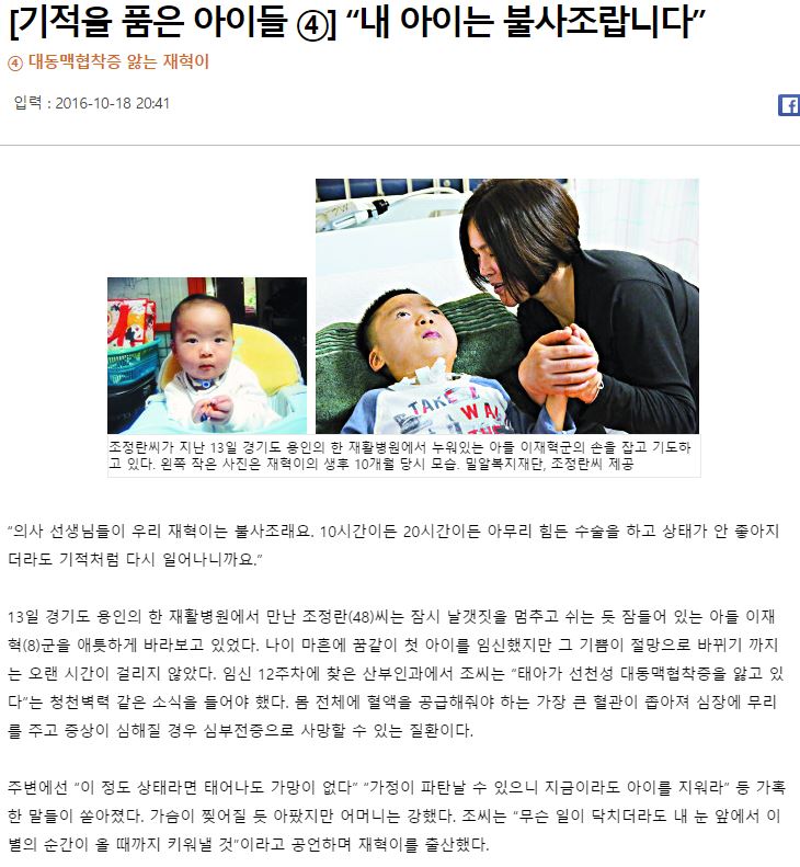 [국민일보, 기적을 품은 아이들 ④] “내 아이는 불사조랍니다”