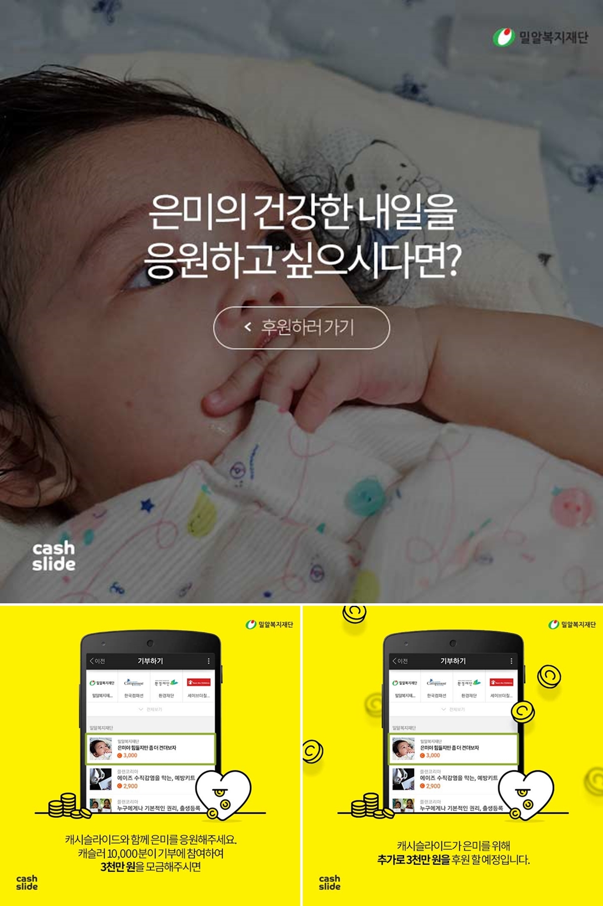 ○ 캐시슬라이드 잠금화면에 장애아동 사연 소개… 사용자들은 적립금으로 해당 아동에 기부 가능