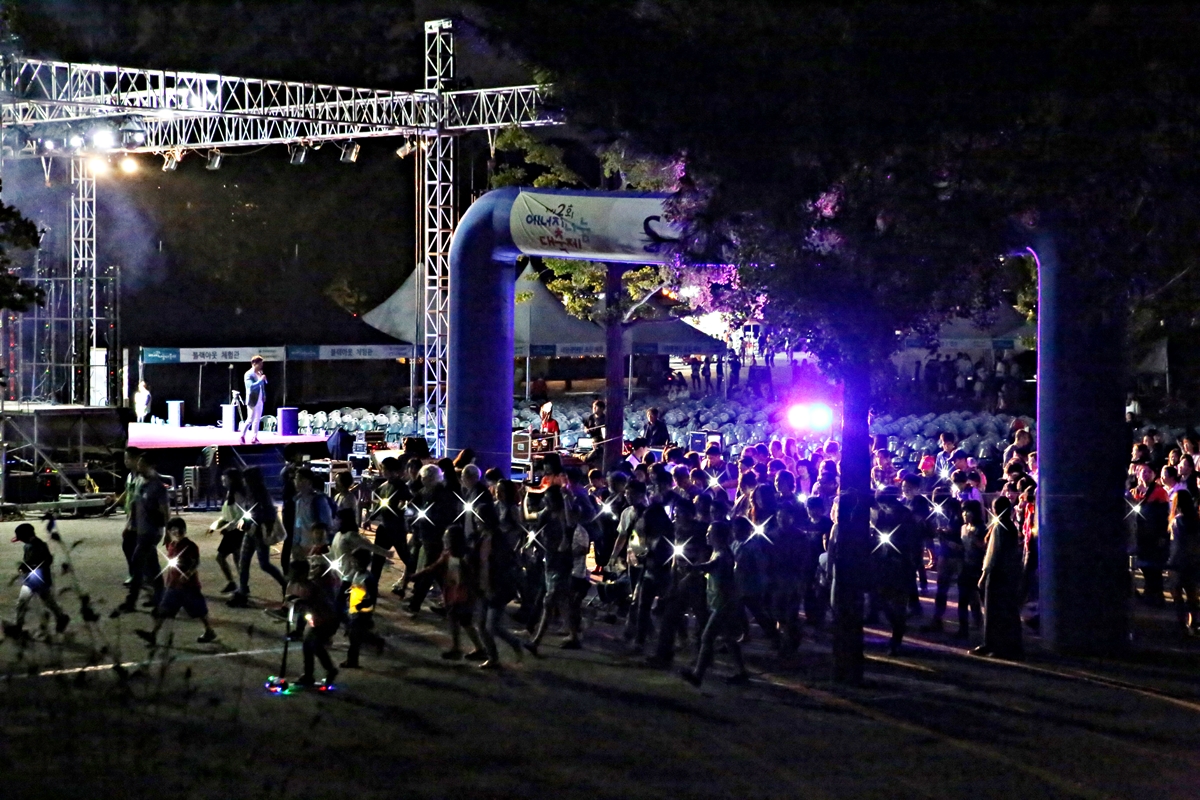 콘서트가 끝난 뒤에는 축제의 하이라이트인 ‘은하수길 걷기 대회’가 개최됐다. 시민들은 해바라기 모양의 소형 태양광 랜턴을 목에 걸고 과천저수지 인근의 약 2.2km 코스를 걸었다.