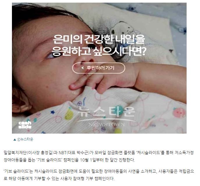 [뉴스타운] 밀알복지재단, 장애아동 돕는 ‘기브 슬라이드’ 캠페인