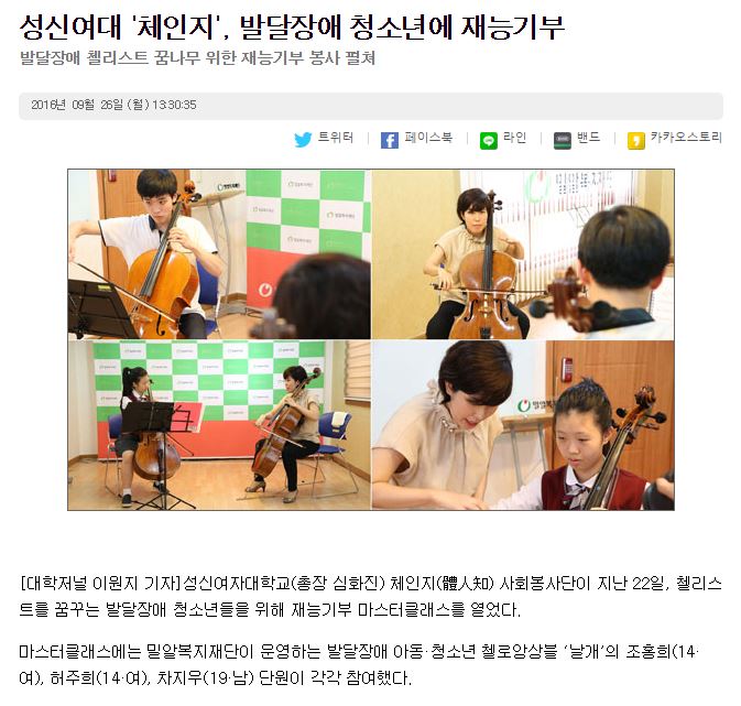 [대학저널] 성신여대 '체인지', 발달장애 청소년에 재능기부