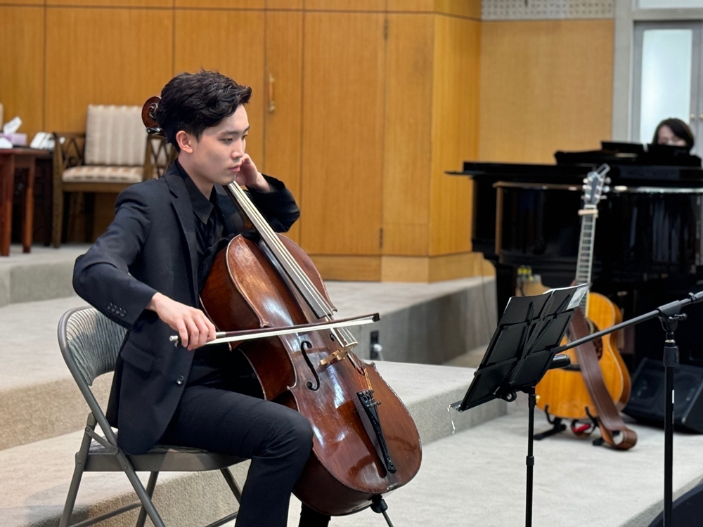 맡는 등 국내외를 넘나들며 첼리스트로서 활동하고 있다. 이날 어메이징그레이스 위드바하, 은혜 등을 연주한 차 씨는 수준급의 연주로 성도들의 큰 박수를 받았다.