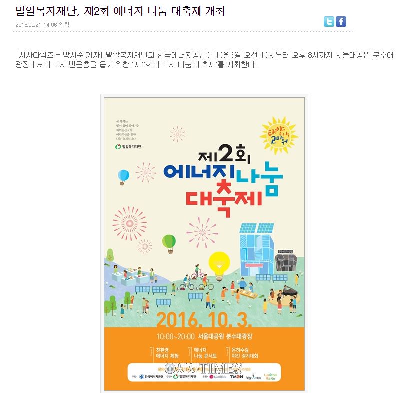 [시사타임즈] 밀알복지재단, 제2회 에너지 나눔 대축제 개최