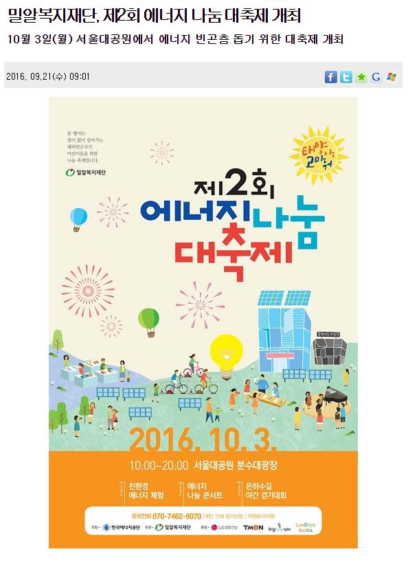 [뉴스타운] 밀알복지재단, 제2회 에너지 나눔 대축제 개최