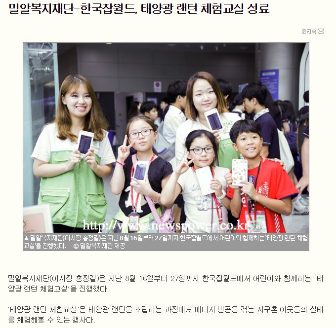 [뉴스파워] 밀알복지재단-한국잡월드, 태양광 랜턴 체험교실 성료