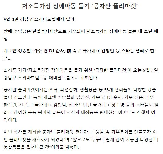 [기독일보] 저소득가정 장애아동 돕기 ‘콩자반 플리마켓’