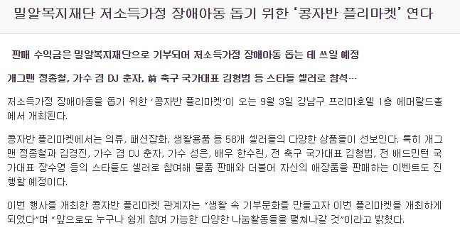 [한국교회공보] 밀알복지재단 저소득가정 장애아동 돕기 위한 ‘콩자반 플리마켓’ 연다