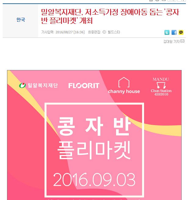 [월드스타] 밀알복지재단, 저소득가정 장애아동 돕는 '콩자반 플리마켓' 개최