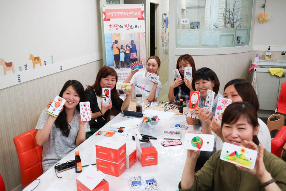 에너지절약과 에너지나눔의 의미를 되새기고자 ‘땡이의 미술여행 대전서구지사’의 임직원들은 재능기부로 8월 16일 태양광랜턴조립과 랜턴꾸미기 행사에 참여했으며, 성민지역아동센터를 시작으로 대전지역 5개구 지역에서 체험교실이 진행될 예정이다. 또한 계룡문구는 8월 13일 태양광랜턴 조립체험교실이 진행되었으며 9월에도 체험행사가 진행될 예정이다. 매주 토요일 13시부터 17시까지 누구나 참여가능하다.