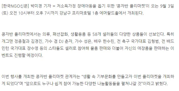 [한국NGO신문] 저소득가정 장애아동 돕는 ‘콩자반 플리마켓’ 개최