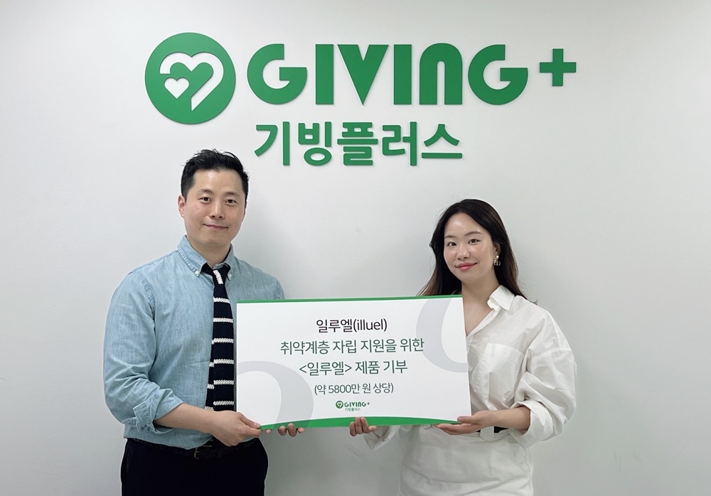 지난 5일 전달식을 통해 기부된 ‘일루엘 데일리 카밍밤’ 제품은 기빙플러스 선유도점, 당산점, 양재점, 수서점 총 4곳을 통해 합리적인 가격에 판매된다. 판매 수익금은 기빙플러스에서 일하는 장애인, 경력단절여성, 다문화 등 고용취약계층 근로자들의 월급과 지역사회 소외이웃들을 지원하는 데 쓰일 예정이다.