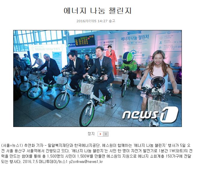 [뉴스1] 에너지 나눔 챌린지