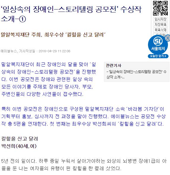 [에이블뉴스] ‘일상속의 장애인-스토리텔링 공모전’ 수상작 소개-①