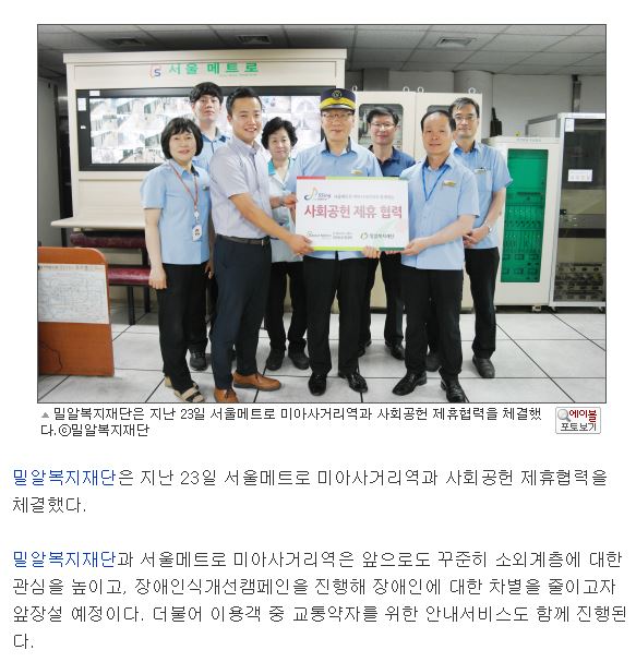 [에이블뉴스] 밀알복지재단·미아사거리역, 장애인식개선 캠페인 전개
