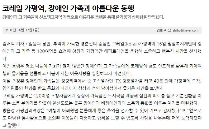 [서울매일] 코레일 가평역, 장애인 가족과 아름다운 동행