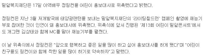 [베이비뉴스] 아역배우 정링컨, 밀알복지재단 어린이 홍보대사 위촉