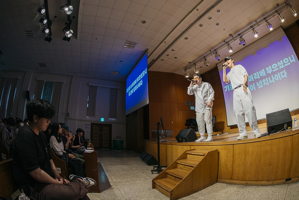 인덕대학교 채플에서 공연 펼치는 하다쉬 뮤직과 콜링콰이어(사진=밀알복지재단)