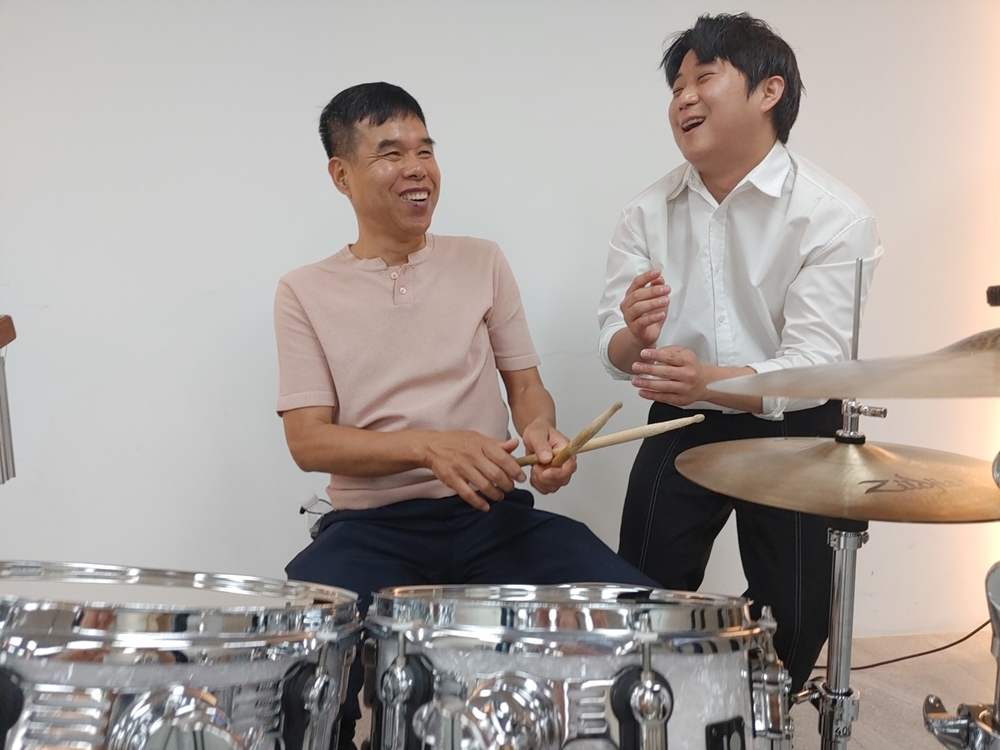 드럼 체험을 하고 있는 시청각장애인 조계석 씨