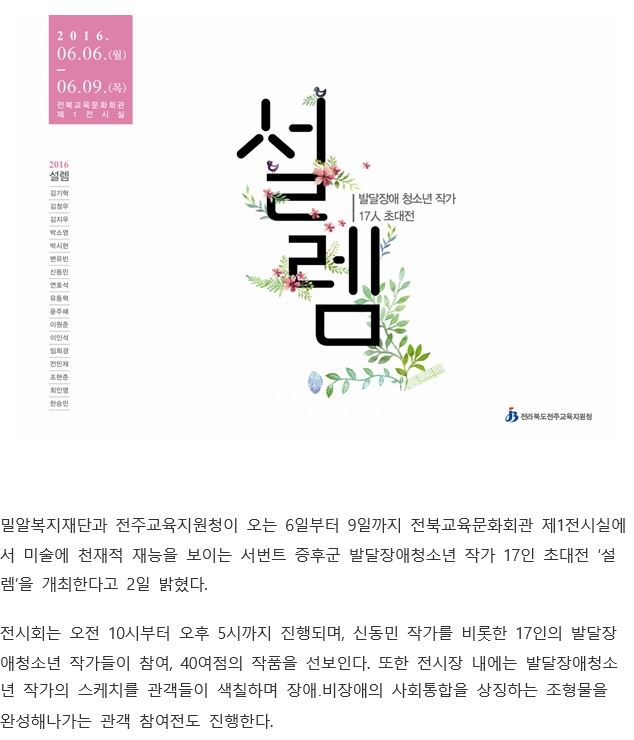 [복지연합신문] 발달장애청소년 작가 17인, '설렘' 초대
