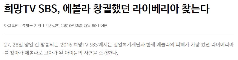 [아크로팬] 희망TV SBS, 에볼라 창궐했던 라이베리아 찾는다