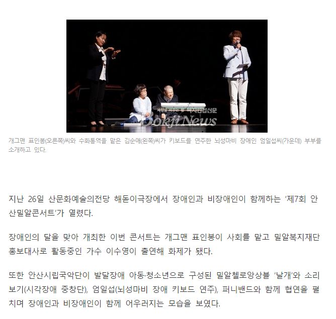 [복지연합신문] 장애인, 비장애인이 함께 즐기는 안산밀알콘서트