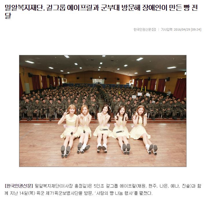 이전 [한국인권신문] 밀알복지재단, 걸그룹 에이프릴과 군부대 방문해 장애인이 만든 빵 전달 다음 [제이칸뉴스] 가수 이수영, 개그맨 표인봉 함께… ‘제7회 안산밀알콘서트’ 성료