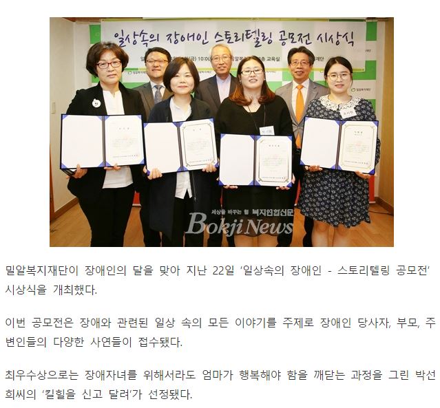 [복지연합신문] 밀알복지재단, 일상 속의 장애인 공모전 시상식