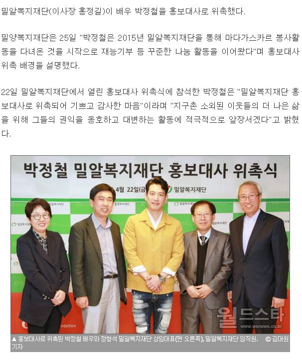 [스타저널] 박정철, 지난 22일 '밀알복지재단'의 홍보대사로 위촉..'재능기부 등 꾸준한 나눔활동 이어가겠다'