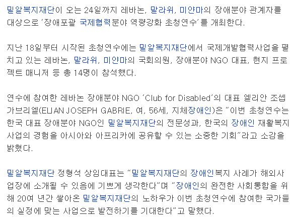 [보도기사] 밀알복지재단, 레바논·말라위·미얀마 장애분야 관계자 초청연수 개최