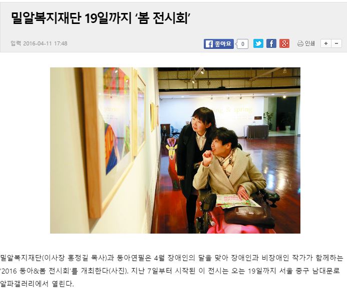 [국민일보] 밀알복지재단 19일까지 ‘봄 전시회’