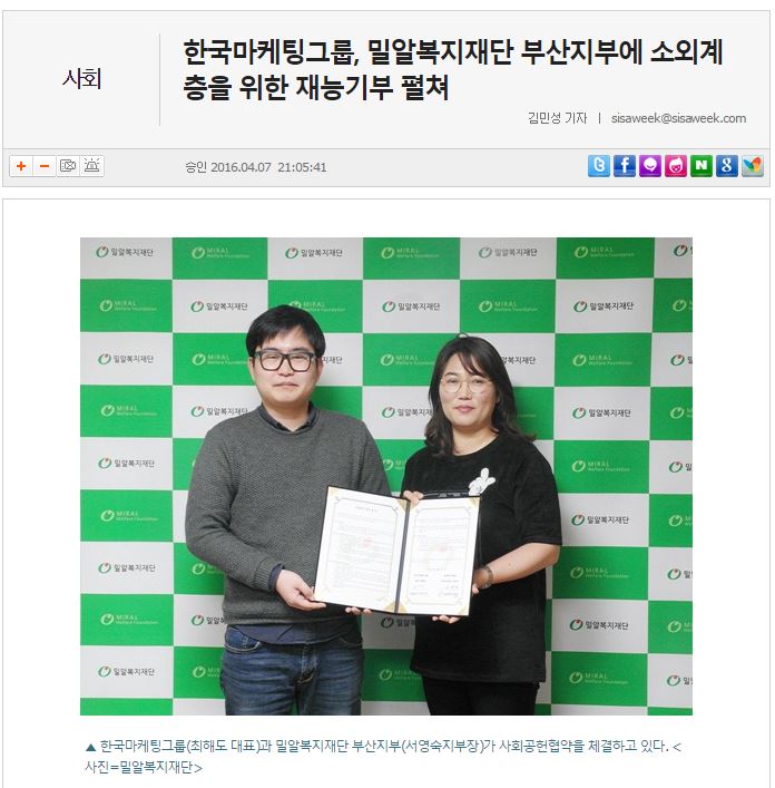 [시사위크] 한국마케팅그룹, 밀알복지재단 부산지부에 소외계층을 위한 재능기부 펼쳐
