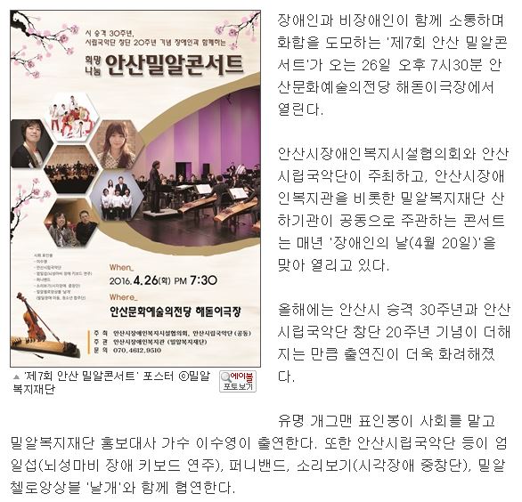 [에이블뉴스] 장애·비장애인 함께하는 '제7회 안산밀알콘서트' 개최