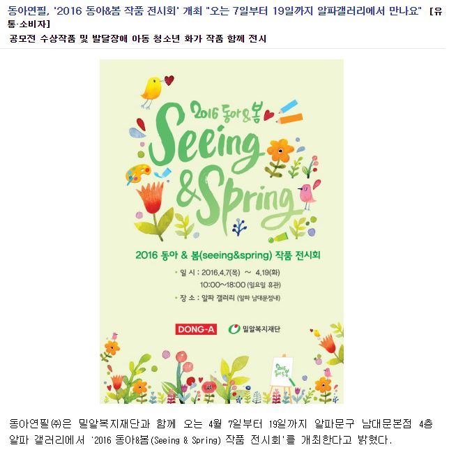 [뉴스비전e] 동아연필, '2016 동아&봄 작품 전시회' 개최