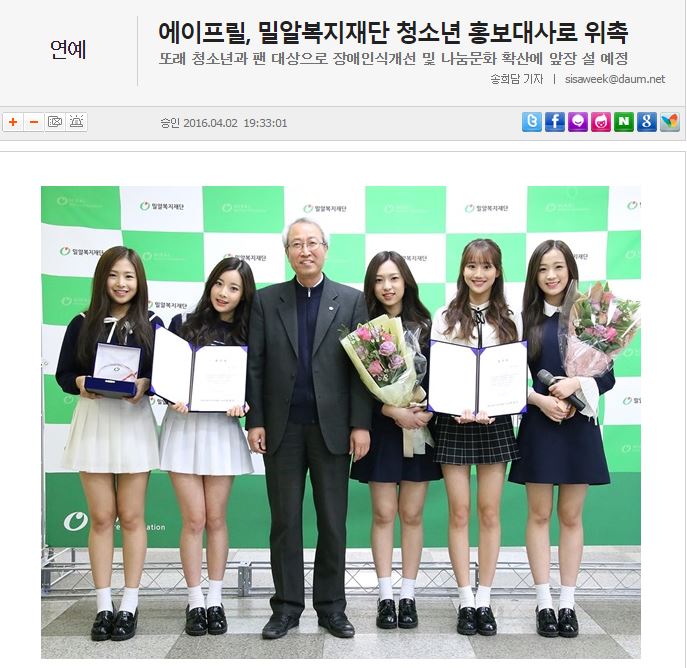 [시사위크] 에이프릴, 밀알복지재단 청소년 홍보대사로 위촉