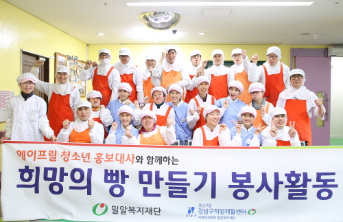 에이프릴이 25일 밀알베이커리에서 희망의 빵 만들기 봉사활동을 펼쳤다.