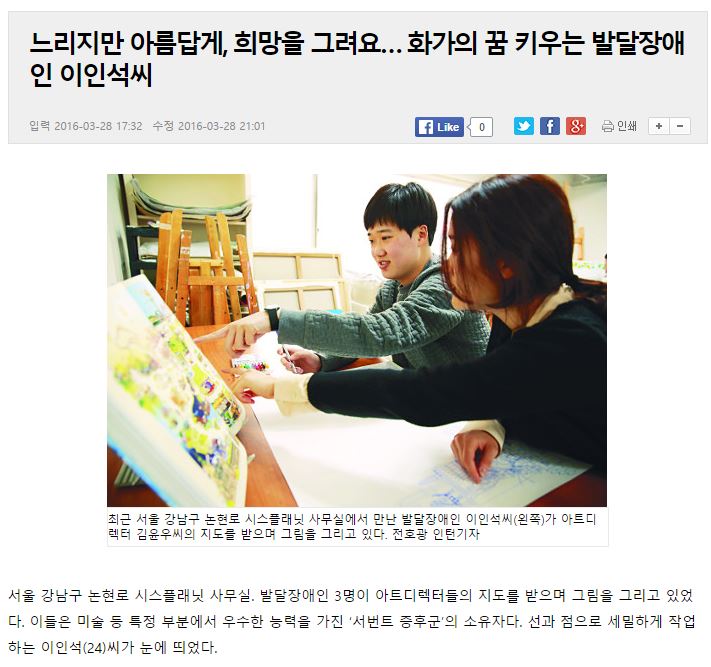 [국민일보] 느리지만 아름답게, 희망을 그려요… 화가의 꿈 키우는 발달장애인 이인석씨