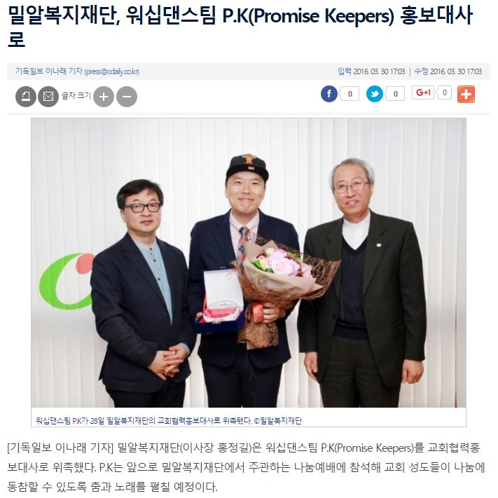 [기독일보] 밀알복지재단, 워십댄스팀 P.K(Promise Keepers) 홍보대사로