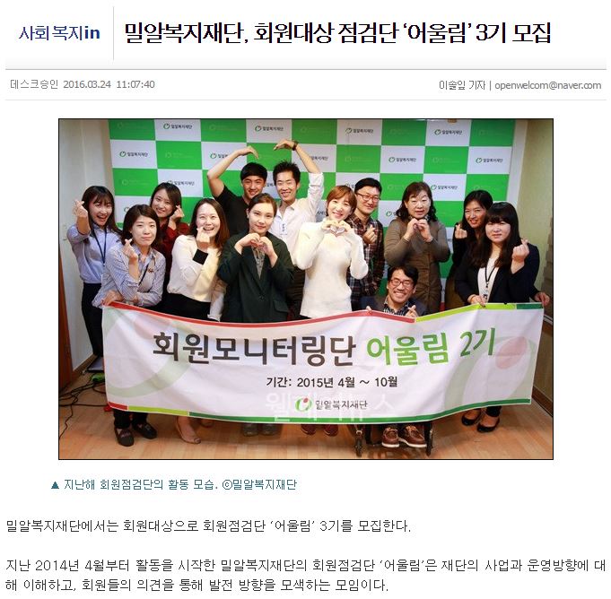 [아크로팬] 밀알복지재단, 회원모니터링단 모집