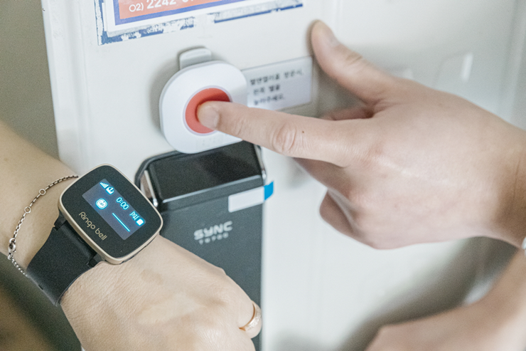 [사진3] 현관벨을 누르면 입소자의 손목시계로 진동이 울리는 시스템을 선보이고 있다.