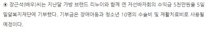 이전 [강원도민일보] 장근석, 5000만원 기부 다음 [연합뉴스TV] 장근석, 바자회 수익금 5천만원 기부