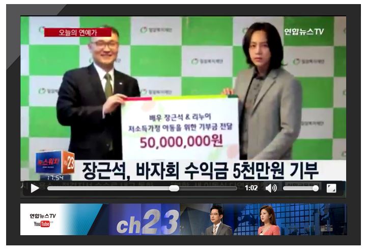 [연합뉴스TV] 장근석, 바자회 수익금 5천만원 기부
