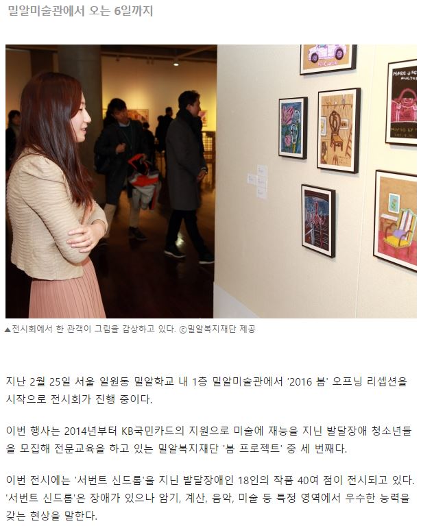 [크리스천투데이] 밀알복지재단, ‘서번트 신드롬’ 작가들 전시회