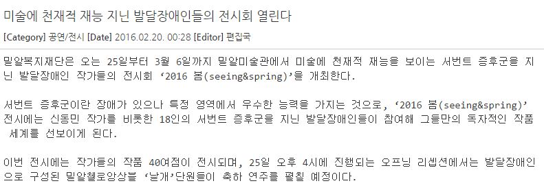 [아크로팬] 미술에 천재적 재능 지닌 발달장애인들의 전시회 열린다