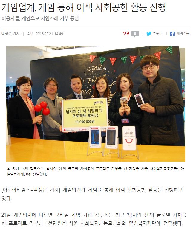 [아시아타임즈] 게임업계, 게임 통해 이색 사회공헌 활동 진행