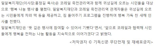 [기독신문] 설 명절, 한국교회 사랑 뜨거웠다